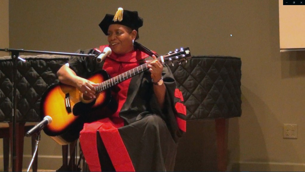 Dr. Winslow honors the graduates with a performance of her song, “Lord Send Me” from her sophomore album Essentials Tunes (2002, Thomasina Winslow Productions).
