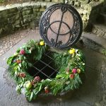 The Chalice Well, situated at the foot of Glastonbury Tor in Somerset, England, pictured here decorated to honor seasonal rites.